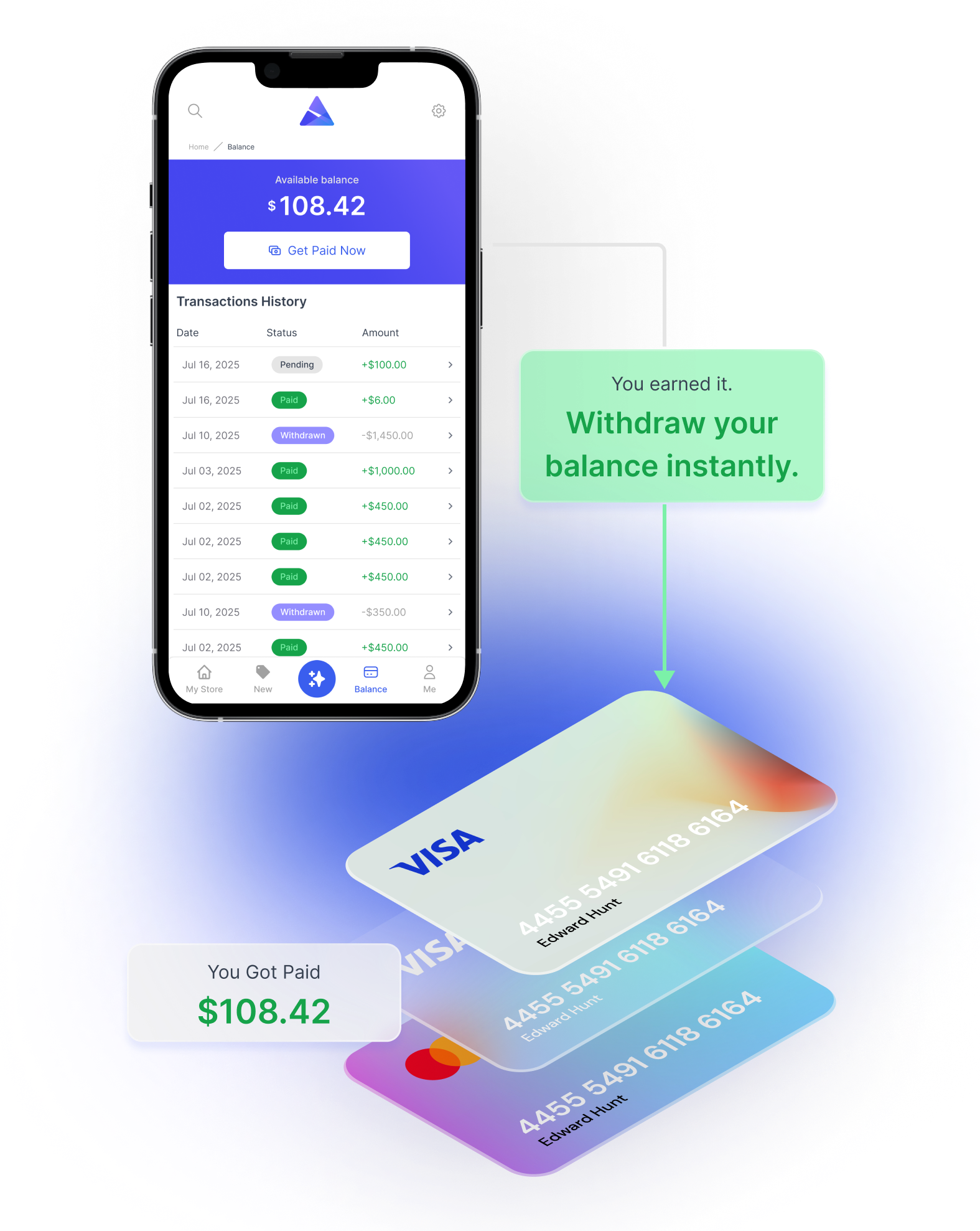 Drop your store link in bio, in a video, or on a Live. Every sale sends clean profits straight to your account. No commission, no middleman.