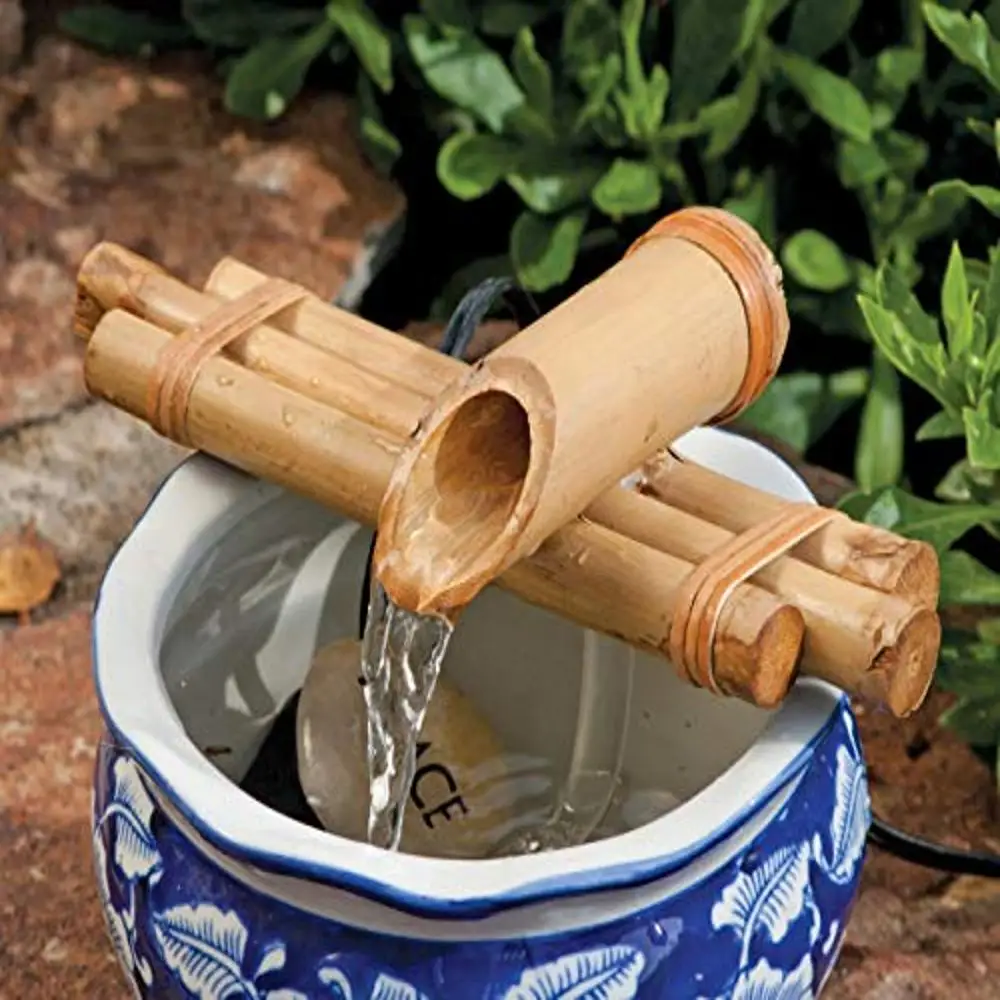 CREATE A MINIMALIST ZEN GARDEN: Relax to the calming sounds of cascading waterfall with this do-it-yourself water fountain; a 7-inch 3 arm bamboo spout & pump instantly turns any outdoor or indoor space into your own mini oasis (Bowl not included)
