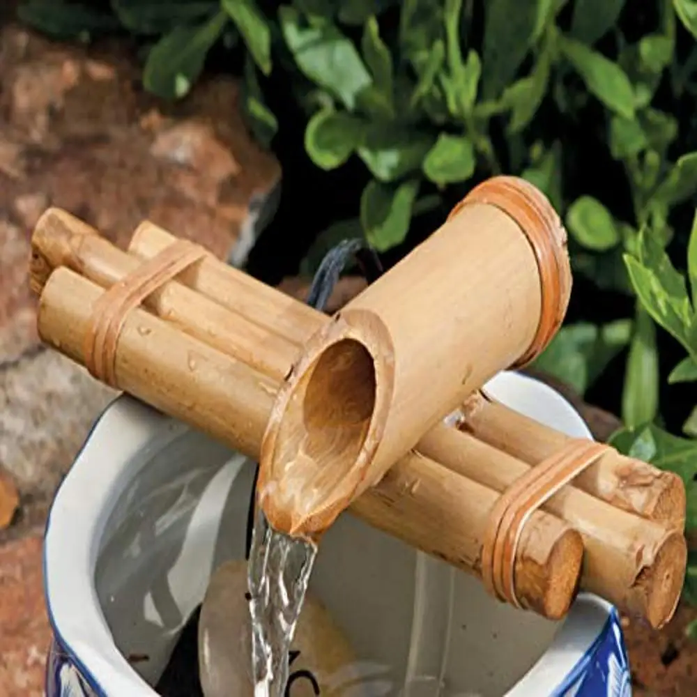 Bamboo 3-Arm Water Fountain Zen Garden Indoor Outdoor Pump Included Zen Oasis Relaxing Sounds Split-Resistant Strong Durable