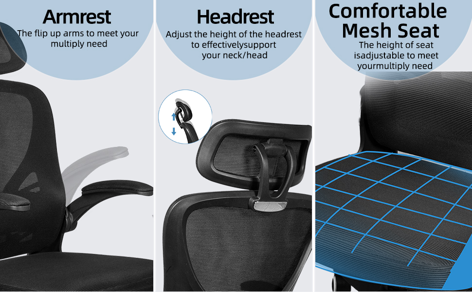 ★【Adjustable Chair & Space Saving 】The swivel computer task chair is designed to satisfy your different needs.You can easily adjust the height and angle of the headrest,supporting your neck.Flip-up Arms to meet different needs,you can push the desk chair with headrest directly under the desk to use more area.