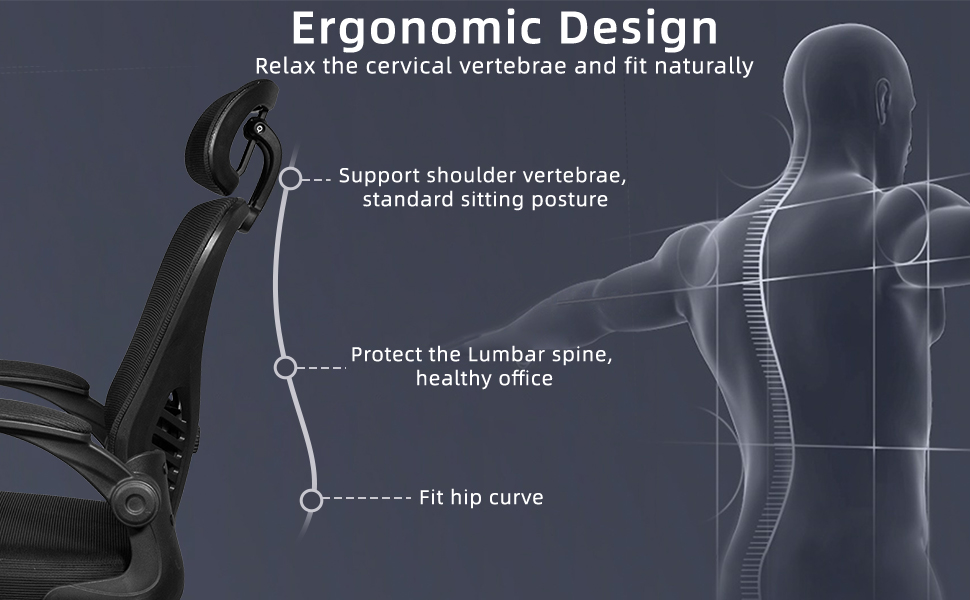 ★ 【Office Chair with Lumbar Support】The executive mesh office chair features personalized back support that has different height adjustments. Find the right lumbar height to perfectly fit your body, easing spinal stress and reducing back pain.This is especially crucial for those who sit for extended periods in offices or at home, as it promotes good posture.