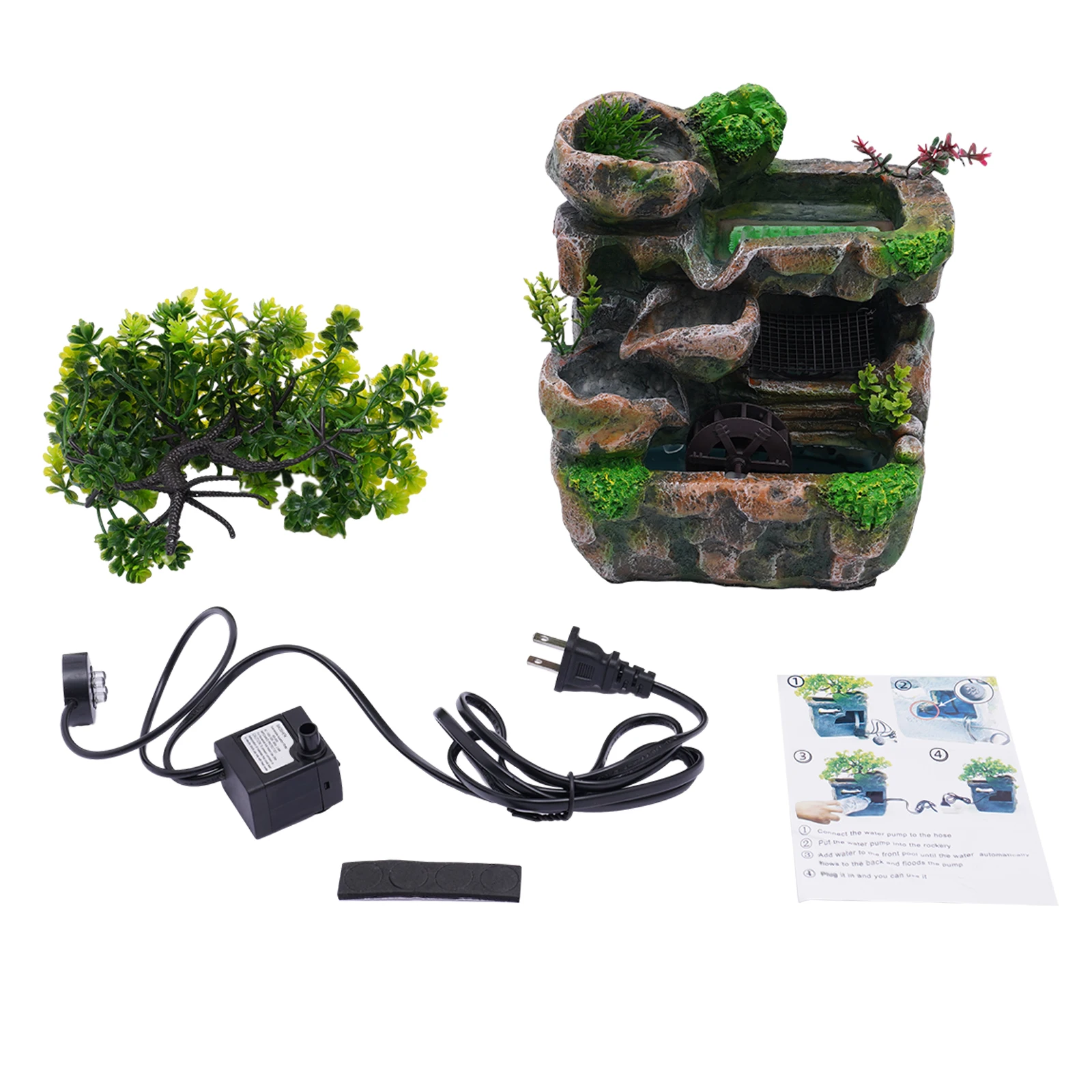 【SPARKLING LED LIGHTS】Enjoy Our Water Feature Led Fountain Lights In The Evening On Your Garden Patio Or Bedroom Table. The Colorful Light And Artificial Landscape Make The Tabletop Fountain The Perfect Choice For Decoration. This Desktop Fountain Is Made Of High Quality Synthetic Resin Material, Non-Toxic, Safe And Durable.