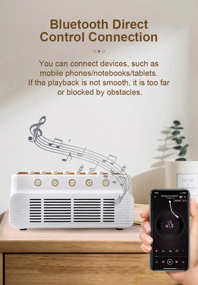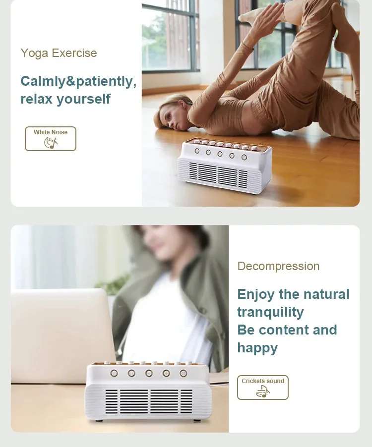 Portable Wireless Bluetooth Speaker White Noise Machine with Clock Mini Sleep Aid Device Stereo Natural Sound System HIFI Audio