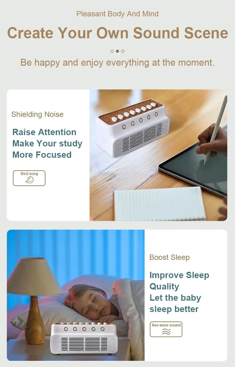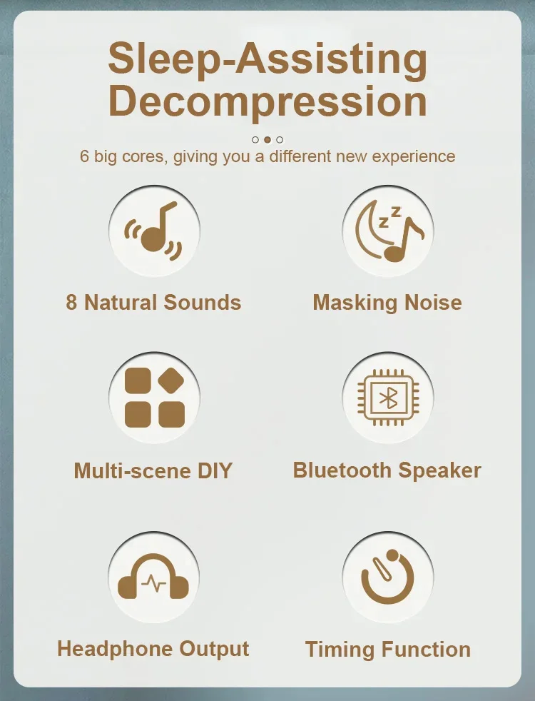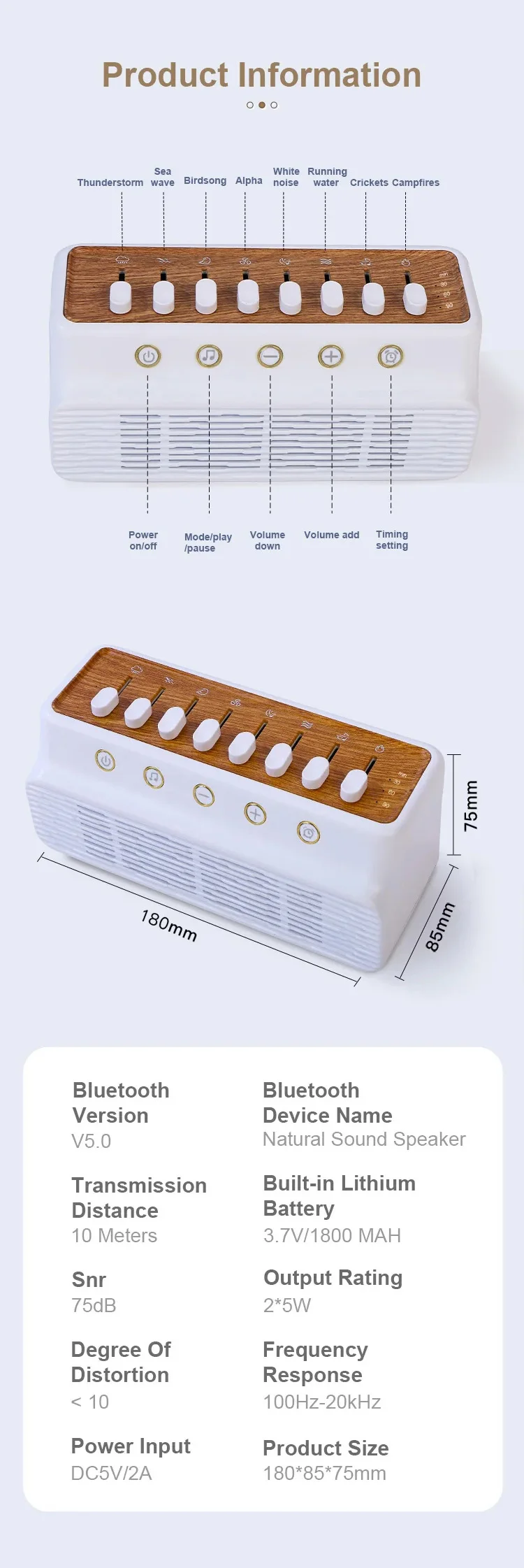 8 Natural Sounds ,Masking Noise ,Bluetooth Speaker ,Multi-scene DIY ,Headphone Output ,Timing Function