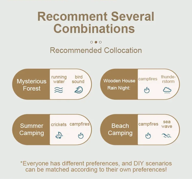 【DIY Sound & DIY Mood】: This sound machine allows for the free combination of multiple natural sounds. The 8 classical nature sounds including sea wave, Alpha, Running Water, Thunderstorm, Campfire, Birdsong, Crickets, White Noise. Up to 255 soothing sounds can be produced in your DIY intermix. You are free to mix and match according to your needs.