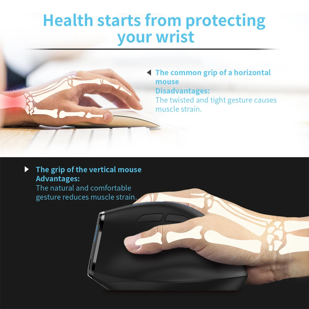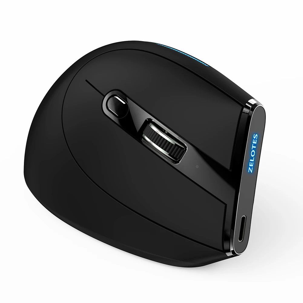 ZELOTES Ergonomic Vertical Mouse 6 Buttons F-36A Wireless Rechargeable Mice 2400 DPI Adjustable Computer Accessories